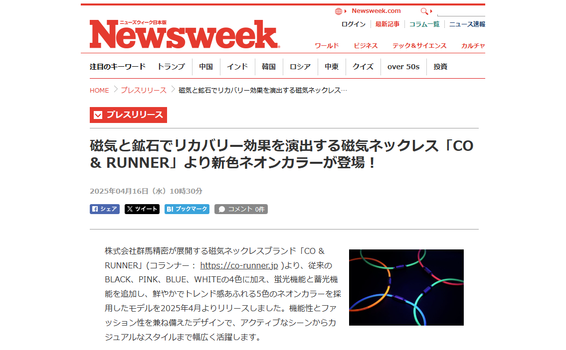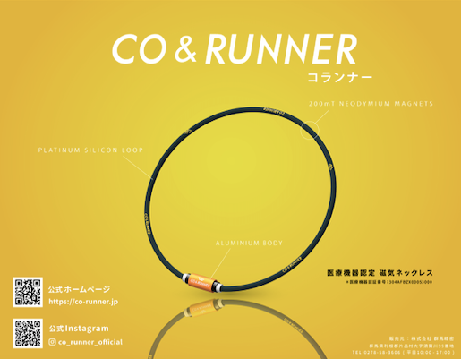 CO&RUNNERは「目標に向かう人をサポートし共に進んでいく製品」をコンセプトに開発された、身体のリカバリー効果を期待したネックレスです。